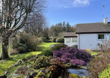 The property offers a generous wraparound garden which is mainly laid to lawn with tarmacadam driveway sweeping round from the front providing parking for a number of vehicles. The driveway is bordered to one side with formal lawned areas interspersed with mature shrubs and trees. To the rear of the property is a generous paved patio area which can be accessed from both the conservatory and living room which is ideal for al fresco dining with another formal lawned area interspersed with a variety of mature shrubs and heathers providing interest and colour all year round. Well established rockery with a number of alpines.