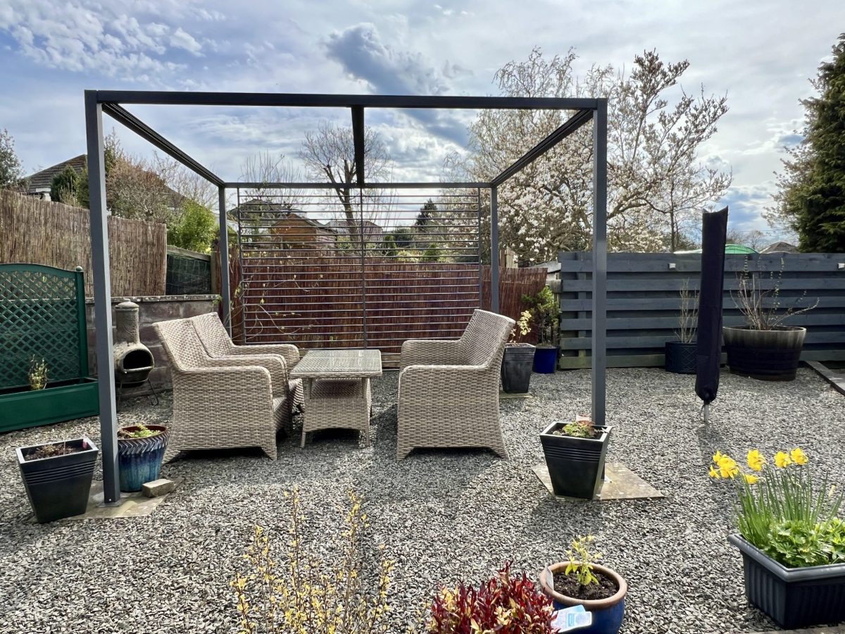 5 Burnside Gardens is set back from the road and pavement with a generous front garden mainly laid to gravel with paved paths leading to the front door and paved driveway leading to the garage.