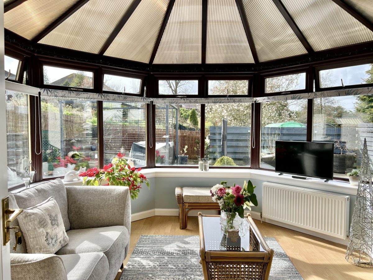 This well-proportioned conservatory is a wonderful reception room which can be used all year round and can be accessed directly from both the dining room / snug and rear garden. Windows on all sides with roller blinds above. 2 Radiators. Wireless thermostat controller. Wall lights. Wood effect laminate flooring.