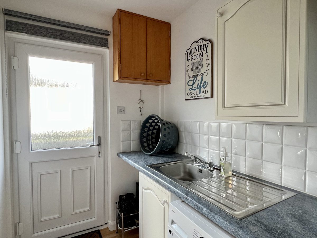 Well positioned utility room with additional storage from two fitted kitchen units with laminate work surfaces above. Stainless steel sink with mixer tap and drainer to side. Tiled splash backs. Plumbing for washing machine and dish washer. Wall mounted cupboard housing electric meter and consumer unit. uPVC obscure glazed door leading out to side and providing direct access to the garden. Radiator. Coat hooks. Large built in cupboard housing Worcester gas fired boiler. Loft access hatch. Wood effect laminate flooring.