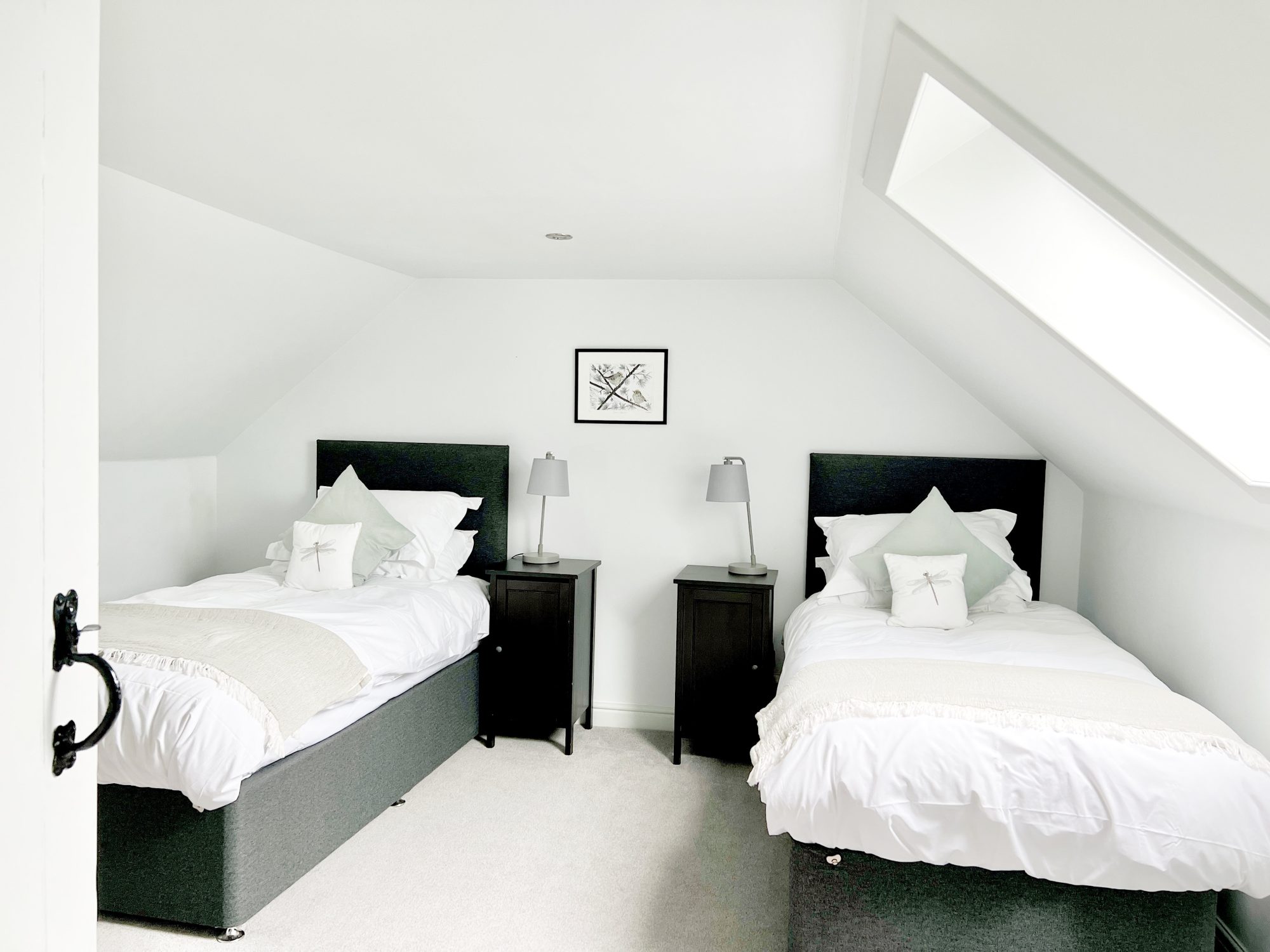 Further spacious double bedroom. Under eaves storage cupboard. Partially coombed ceiling. Recessed LED ceiling spotlights. Loft access hatch. Radiator. Fitted carpet.