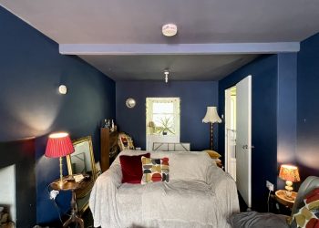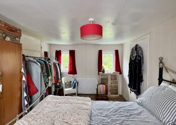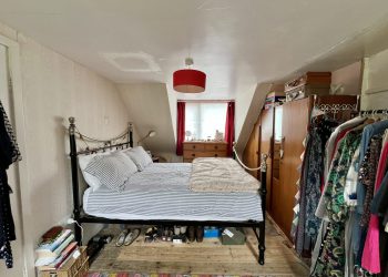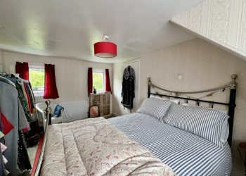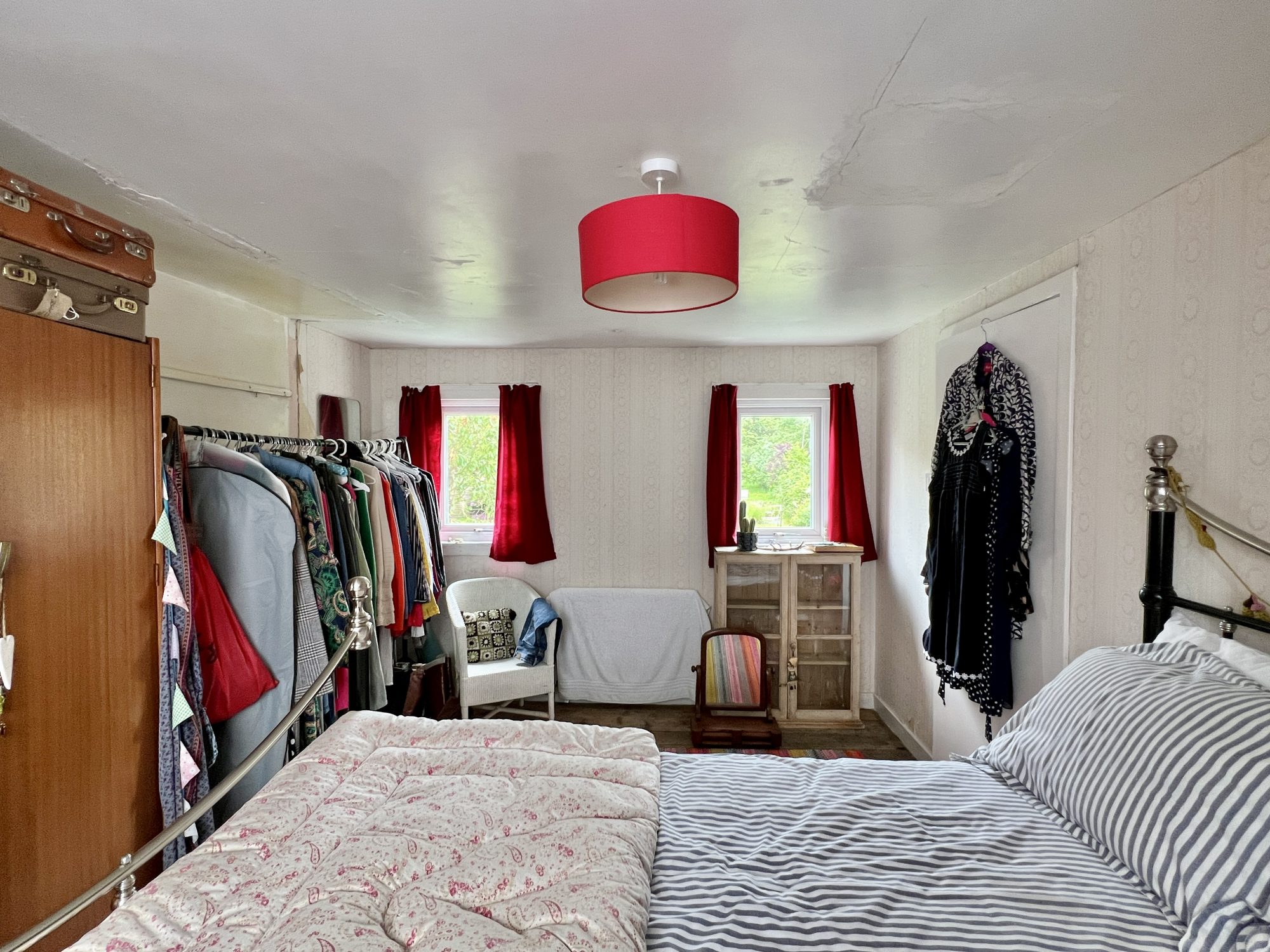 Light, spacious double bedroom enjoying a dual aspect, with one UPVC double glazed window to front and two to rear. Stripped wooden floorboards. Fitted wardrobes. Ceiling light.