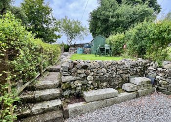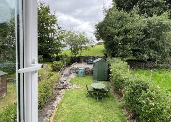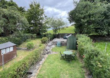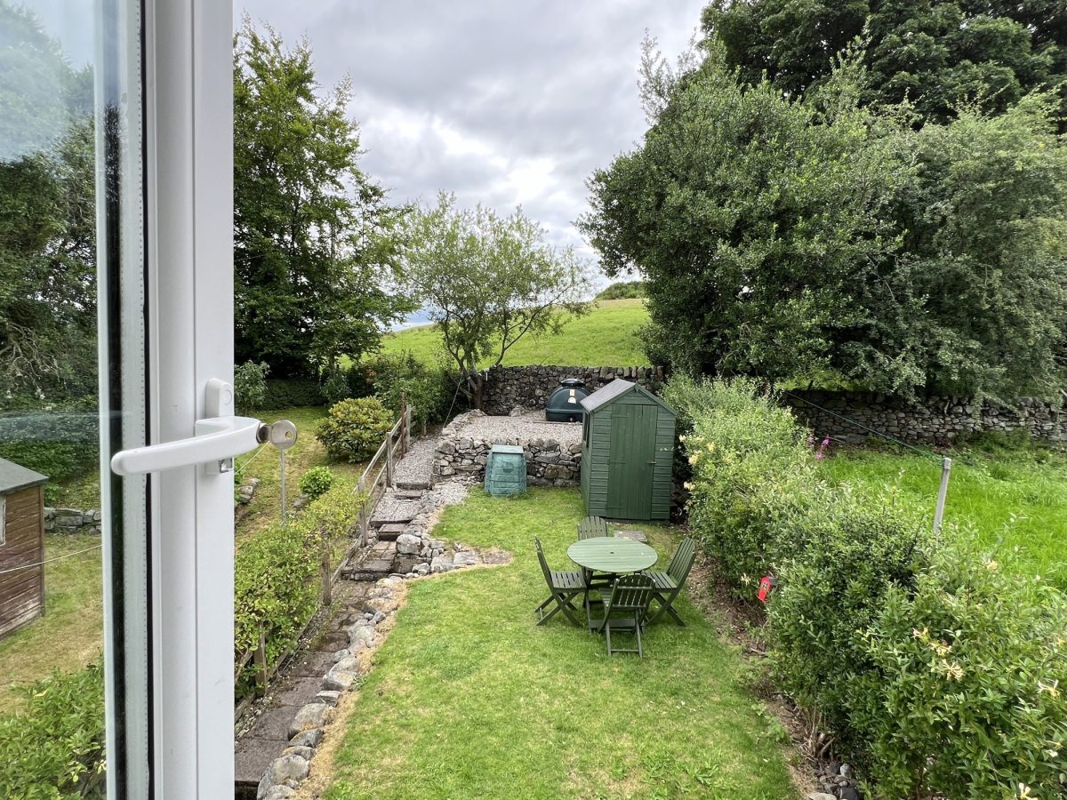 Lylach cottage benefits from a spacious rear garden which can be accessed directly from the Kitchen. Steps lead up to a generous formal lawned area bordered by shrubs and hedging. This tranquil oasis looks on to neighbouring farmland. Wooden Shed