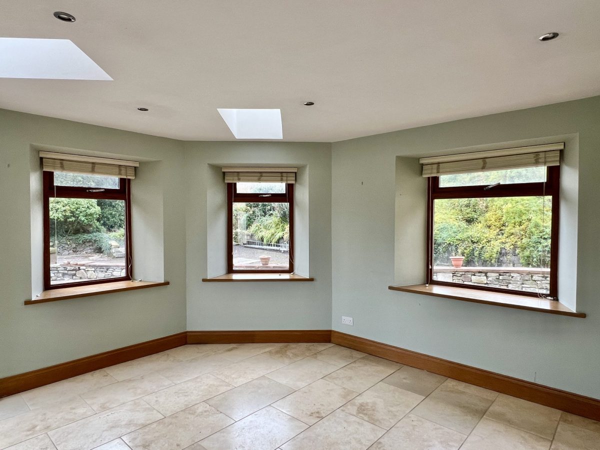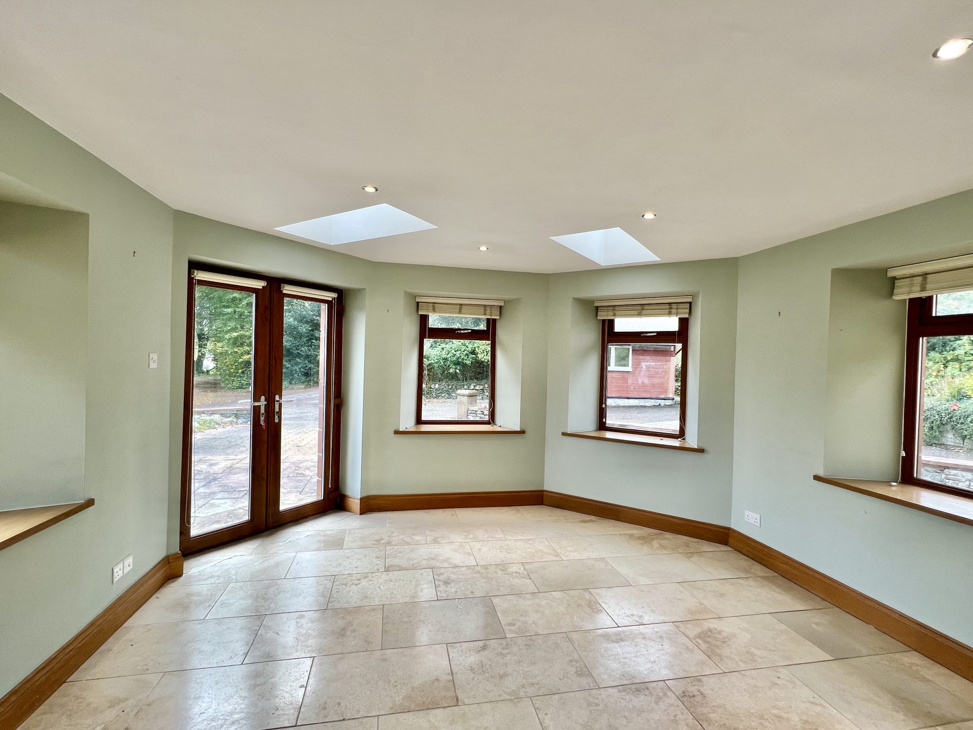 Another bright and welcoming reception room with an abundance of natural light from wrap round wood effect uPVC double glazed windows on all walls and two Velux windows. Recessed LED ceiling spotlights. French doors leading out to garden. Ceramic tiled floor. Opens to:-