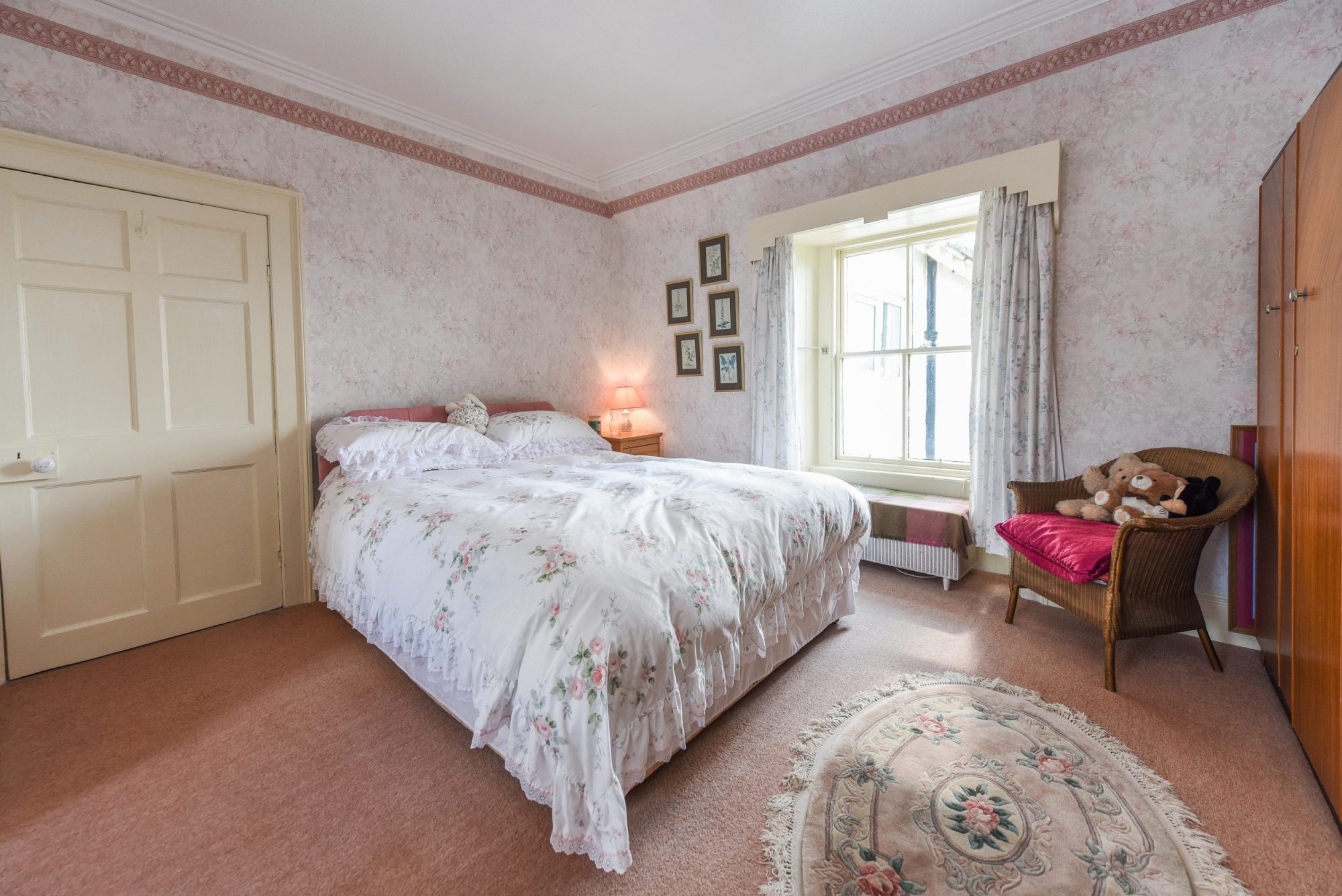 Deep sill beneath. Ceiling cornicing. Ceiling light. Smoke alarm. Fitted Carpet.