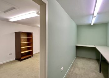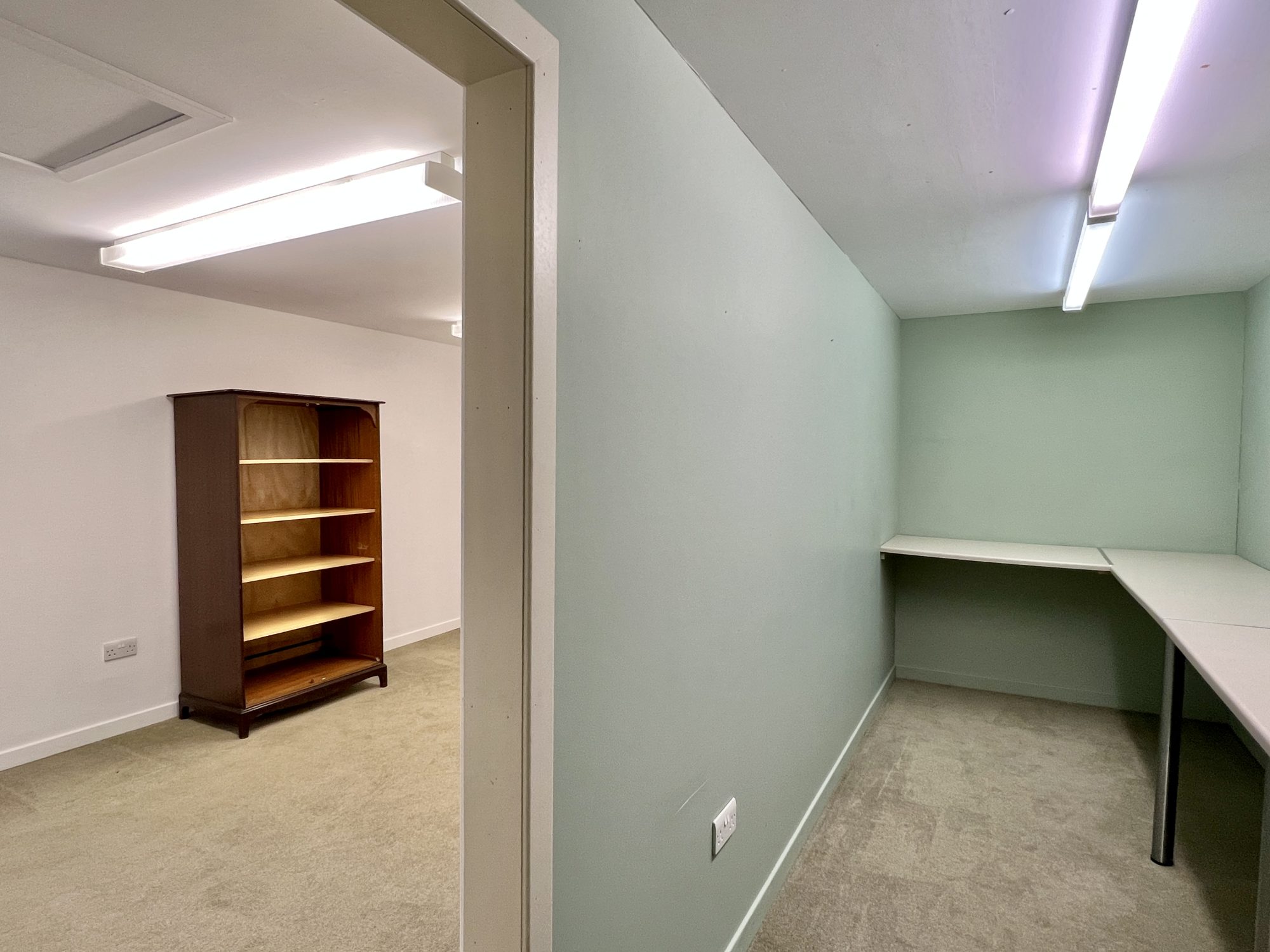 2 florescent strip lights. Built-in work benches. Fitted carpet