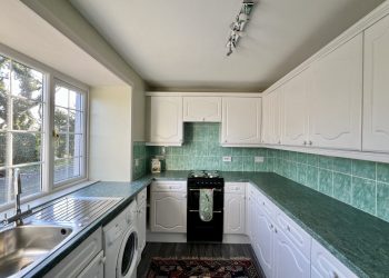 Galley style kitchen with a good range of fitted kitchen units and laminate work surfaces. Tiled splashbacks. Stainless steel sink with mixer tap and drainer to side. Washing machine. Freestanding electric oven with extractor hood above. Freestanding Haier freezer. Ceiling spotlights. Smoke alarm. uPVC double glazed window with outlook to front and deep sill. Radiator. Wood effect vinyl flooring.