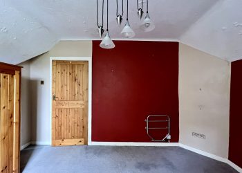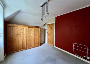 2 built-in pine double wardrobes. Electric radiator. Sash and case window. Partially coombed ceiling. Ceiling light. Fitted carpet.